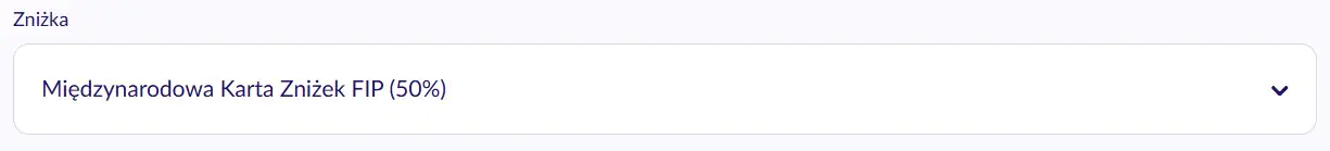 PKP Intercity sells tickets online with FIP 50 discount. During the connection search, the option “50% MKZ-FIP” must be selected as a discount for the respective person.